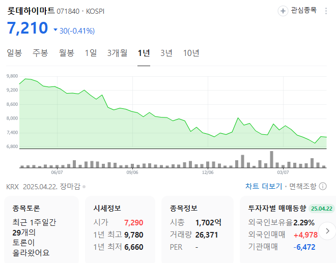 2024년 실적을 살펴보면, 매출은 약간의 감소세를 보였으나, 영업이익률 측면에서는 수익 구조 개선의 노력이 엿보입니다. 이는 고마진 프리미엄 제품의 비중을 높인 결과로 분석됩니다. 다만, 전체 매출 규모가 줄어든 것은 대형 유통업체로서의 경쟁력 약화 신호로도 해석할 수 있어 보입니다.